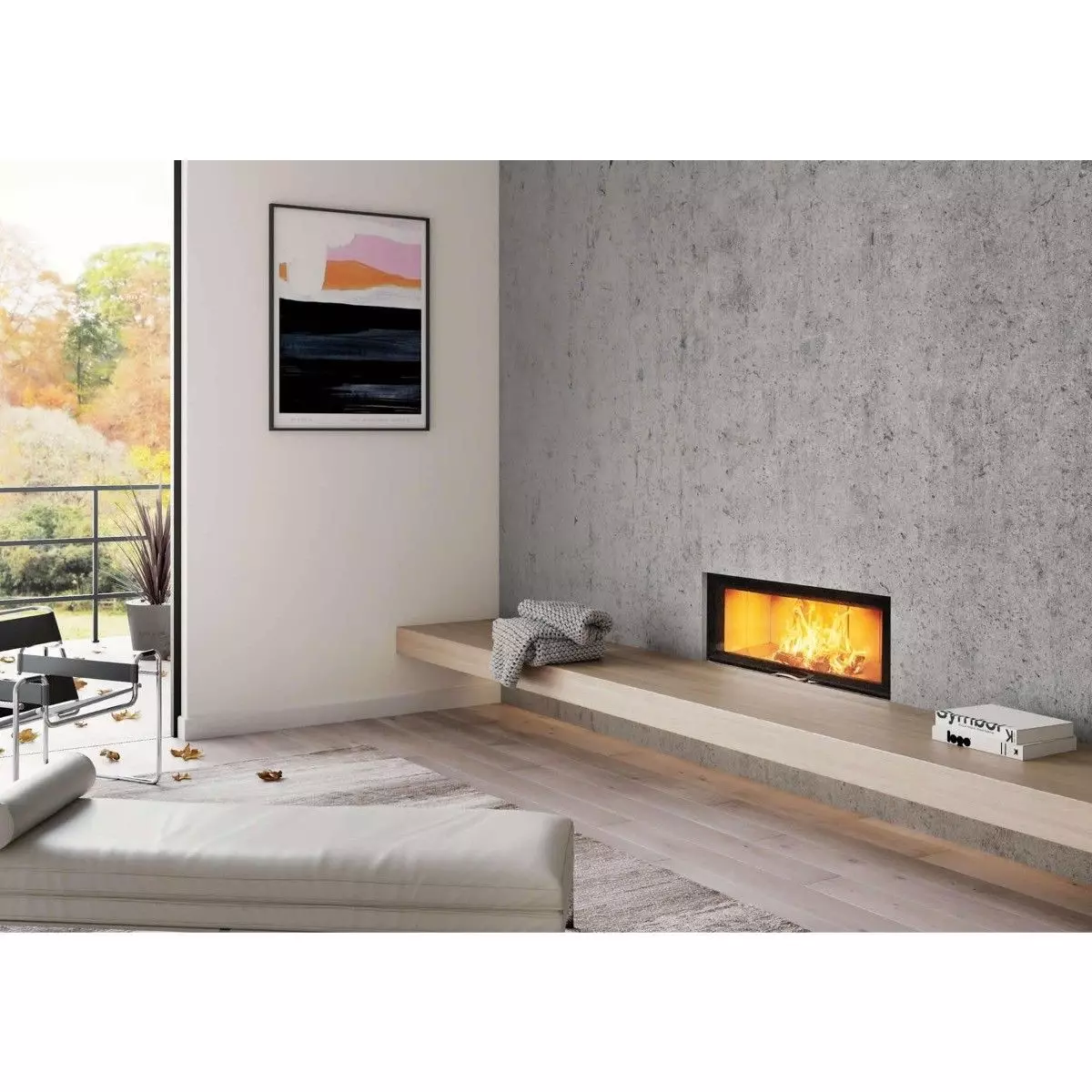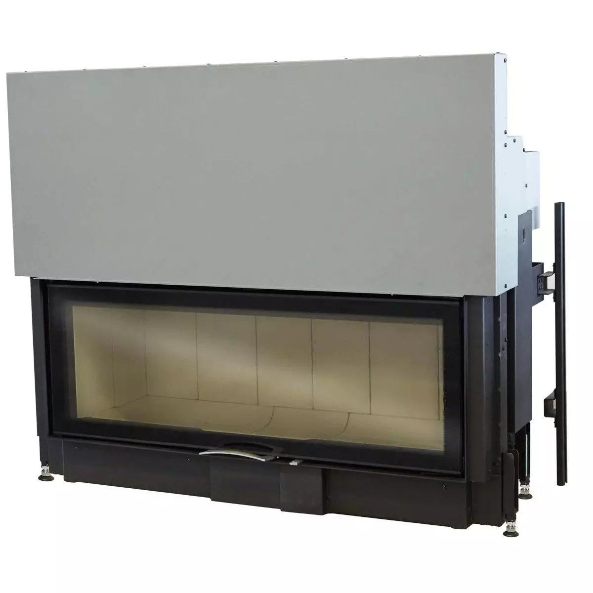 Der Austroflamm Kamineinsatz 120S 2.0 mit gerader Scheibe und Schiebetür.