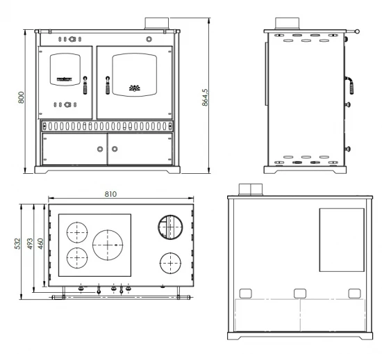 Der Herd ist für die Mehrfachbelegung am Schornstein geeignet (Weiteren Feuerstellen am gleichen Schornsteinzug sind möglich). Da seine lichte Feuerraumöffnung kleiner als 500 cm² ist (Geregelt in der EN 18896 Installationsnorm für Feuerstätten.)
