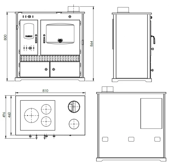 Der Herd ist für die Mehrfachbelegung am Schornstein geeignet (Weiteren Feuerstellen am gleichen Schornsteinzug sind möglich). Da seine lichte Feuerraumöffnung kleiner als 500 cm² ist (Geregelt in der EN 18896 Installationsnorm für Feuerstätten.)
