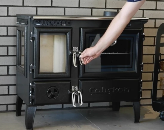 Das Gerät verfügt über eine Anheizklappe. Diese Klappe erleichtert das Entzünden des Feuers, da die Rauchgase einen kürzeren Weg bis zum Rauchrohranschluss gehen können. Ist das Feuer entfacht, wird die Klappe geschlossen und die Rauchgase um das Backfach geleitet. So können Sie die Temperatur im Backfach auch gut regulieren.