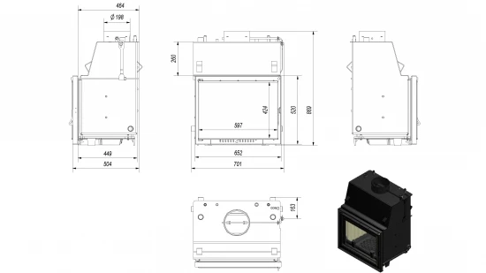 – Kaminkörper und Kaminfront aus massivem Stahl