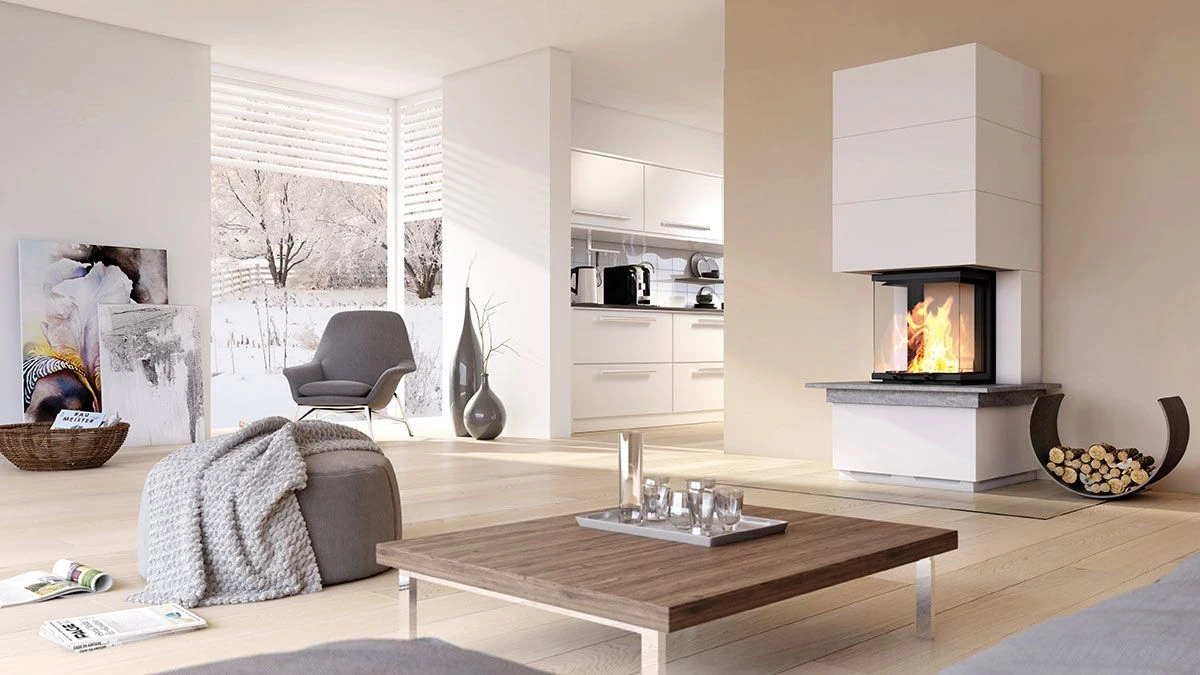 Die Camina & Schmid Kamineinsätze sind (je nach Modell)mit Schamotte glatt Weiß, Anthrazit oder Guss Anthrazit ausgestattet.