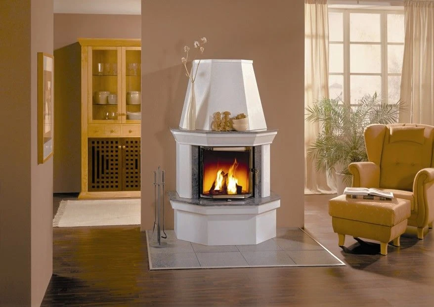 Wer es eher traditionell und elegant mag, für den ist die S4 als Front- oder Eckvariante das Richtige. Durch die großzügige Sichtscheibe sorgt dieser Kamin für eine gemütliches Licht und spendet Ihren Wohnraum eine wohlige Wärme. Das klassische Modell kommt ohne Schnörkel und Schnick-Schnack aus und ist somit zeitlos. Naturstein-Applikationen rahmen die prismatische Sichtscheibe ein. Bei der großen Auswahl an Natursteinen ist bestimmt auch für Ihren Einrichtungsstil das Passende dabei. Die Feuerraumtür des Kamineinsatzes ist sowohl schwenkbar wie auch selbstschließend. Vorteil dabei, die Tür verschließt sich jederzeit selbst und verhindert somit ein gefährliches Offenstehenlassen der Feuerraumtür im Betrieb.