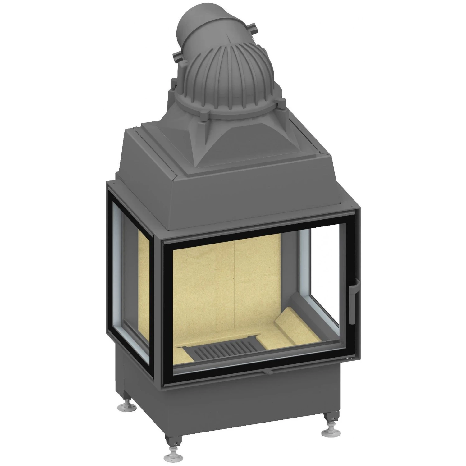 Der Schmid Kamineinsatz Ekko U 67(45)51 s, Türhöhe 51 cm, schwenkbar Glas 3-Seitig – Kamineinsatz, mit eckiger Front.