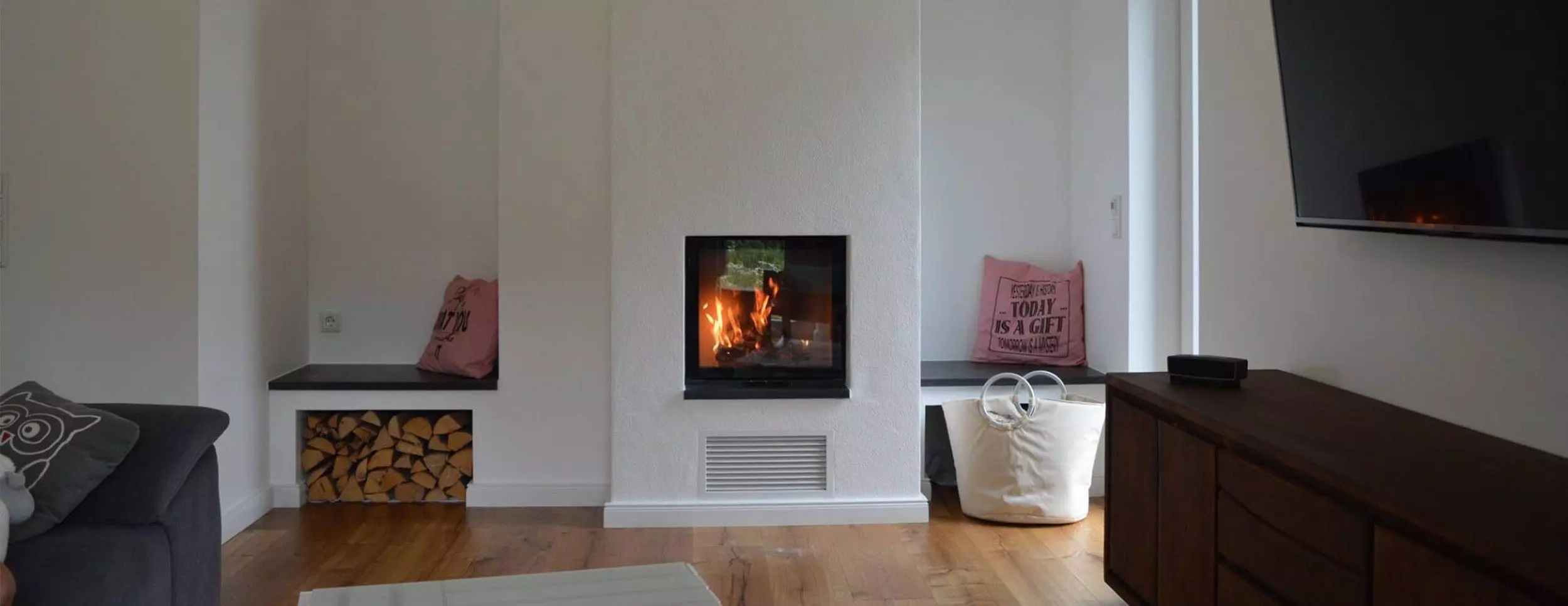 Die Camina & Schmid Kamineinsätze sind (je nach Modell)mit Schamotte glatt Weiß, Anthrazit oder Guss Anthrazit ausgestattet.