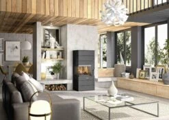 Der Schmidt Kamineinsatz Lina GT 4557 h hochschiebbar, Türhöhe 57 cm – Kamineinsatz mit geringer Tiefe (Korpustiefe 420mm), mit linearer Front, kleinem Brennraum.