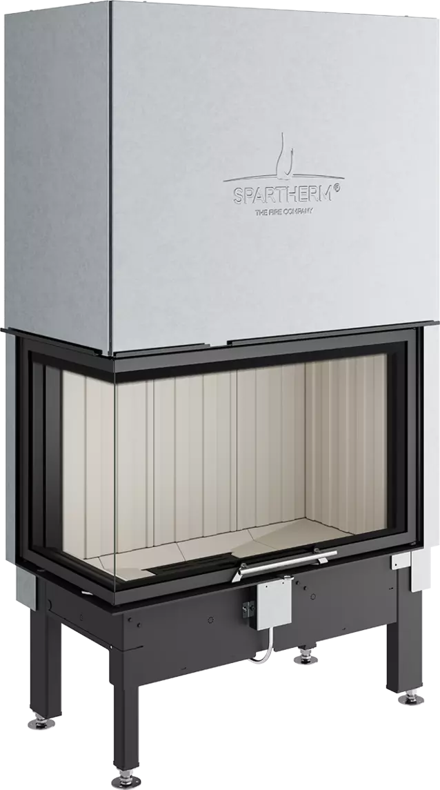 Die Spartherm Brennzelle Varia 2L-80h, hochschiebbar, Türhöhe 513 mm ist ein hochmoderner Kamineinsatz mit hochschiebbarer und (zur Reinigung) auch einseitig klappbarer Tür, der durch seine raffinierte abgewinkelte Scheibe eine mehrfache Sicht auf das Flammenspiel ermöglicht.